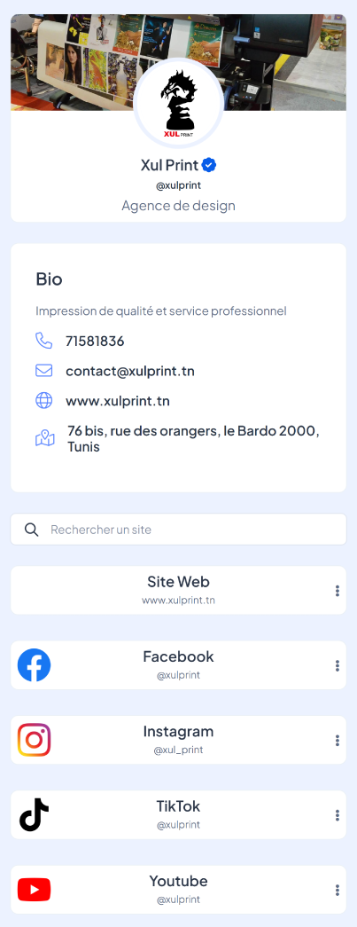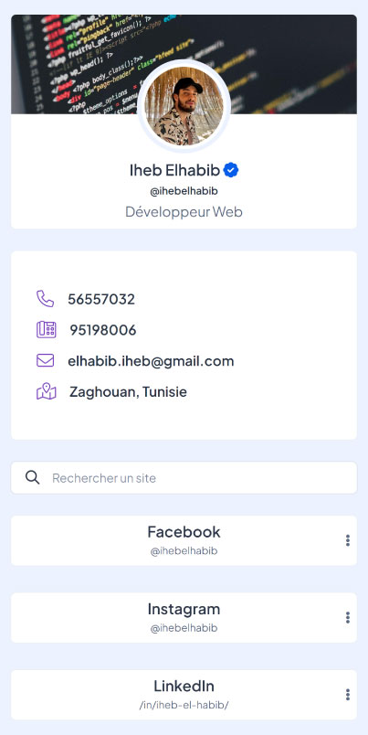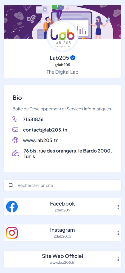 Simplifiez la gestion de vos informations de contact avec TunLink. Créez et personnalisez votre profil en quelques étapes seulement pour une présence en ligne professionnelle et efficace.